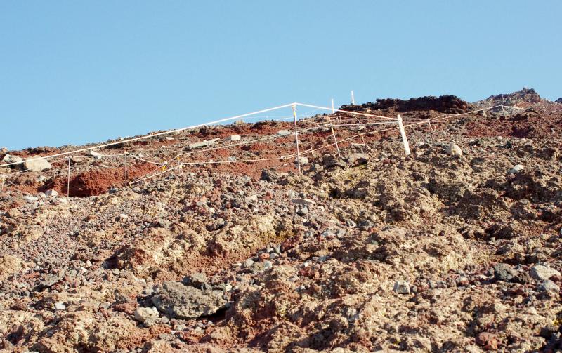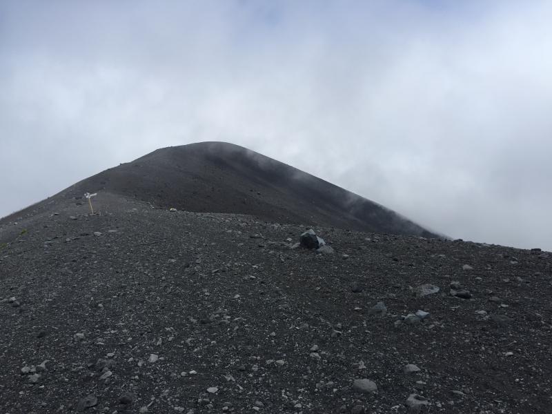 ■御殿場ルート7合目付近の宝永山方面の分岐はブルドーザー道も入り混じります。ガスに覆われると方向が分かりづらいので、道標や地図をしっかり確認しましょう。