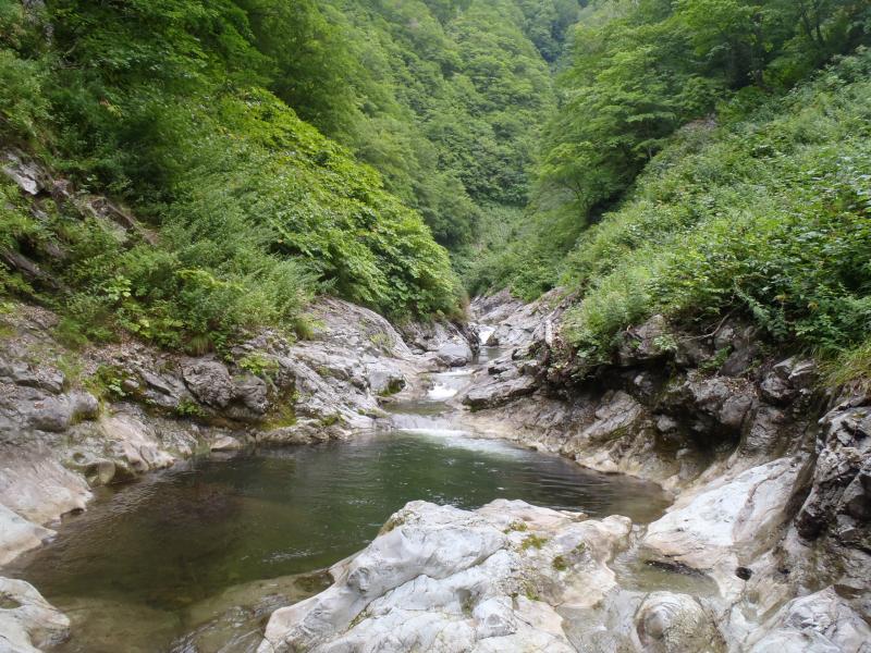 広い河原歩きからはじまり300m二股までは穏やかな渓相でひと泳ぎする程度、ここから