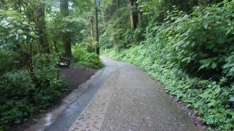 次第に霧雨も小雨と化し、登山道の奥から化けて出てきそうな雰囲気。