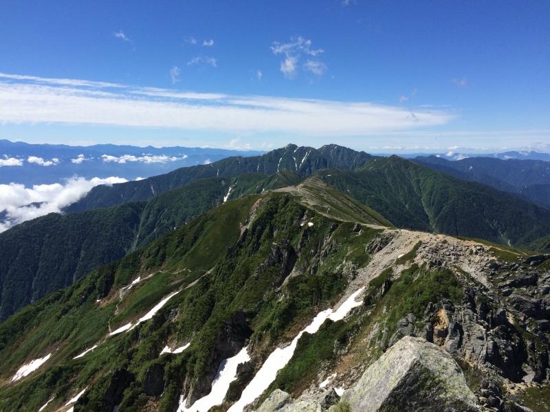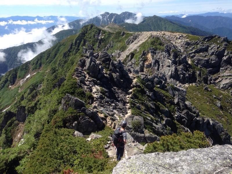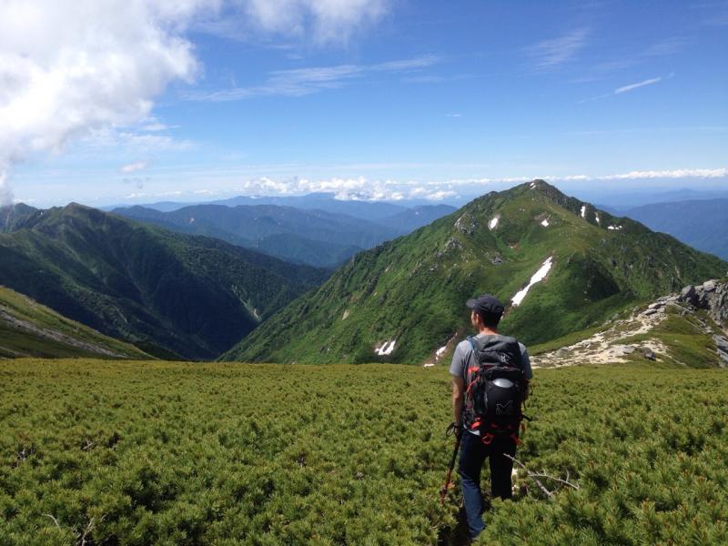 三ノ沢岳へ。天気最高です。青と緑のコントラストが綺麗です。