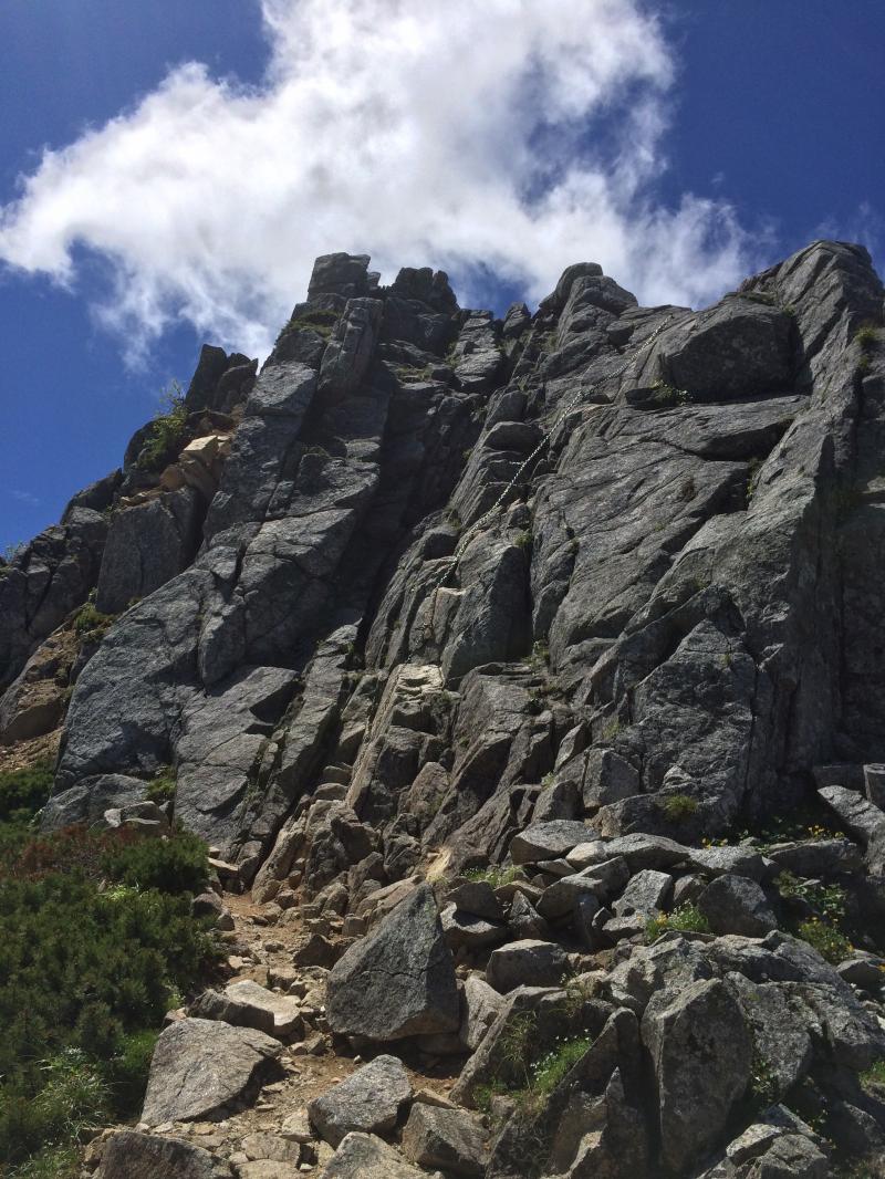 宝剣から三ノ沢岳分岐までの鎖場。