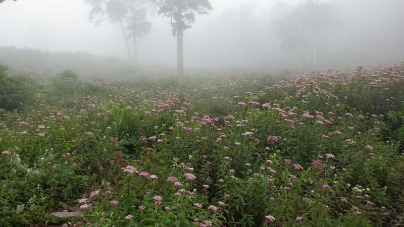 歩き出し時は何となく霧っぽく、見頃を迎えているヨツバヒヨドリがとても幻想的でした。