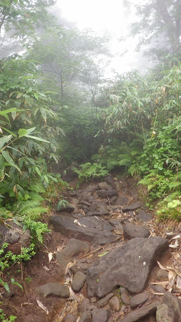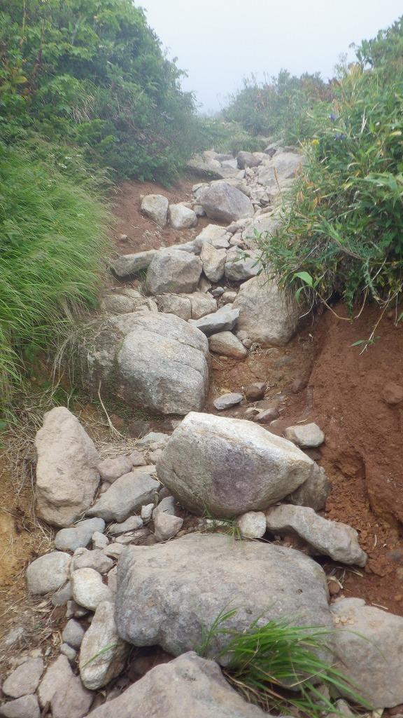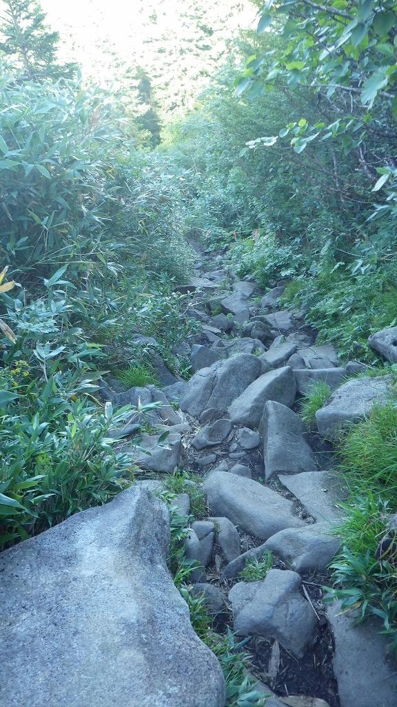 ゴロゴロした石だらけの登山道を、ヨロヨロしながら歩いていきます。