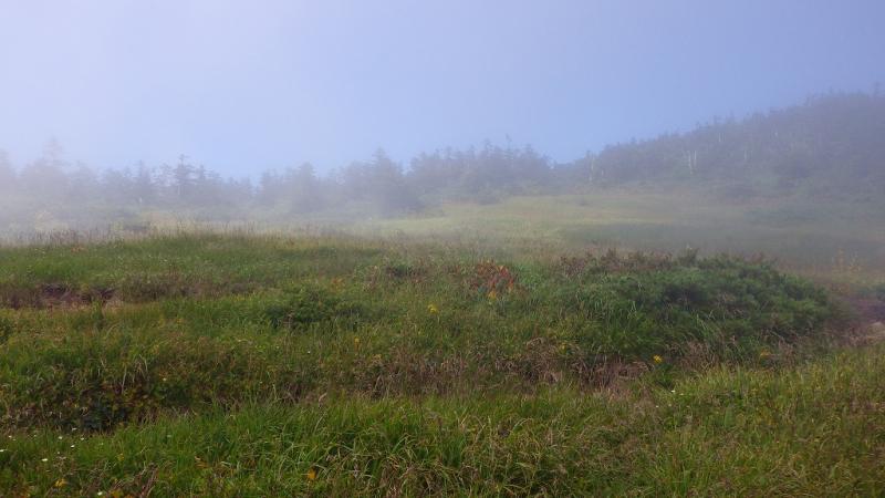 危険な箇所は出てきませんでしたが、夕方になり霧から小雨へと天気が変わっていきました。