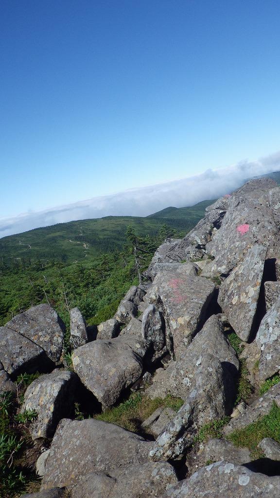 ゴロゴロした石が転がる登山道を上がると・・・。