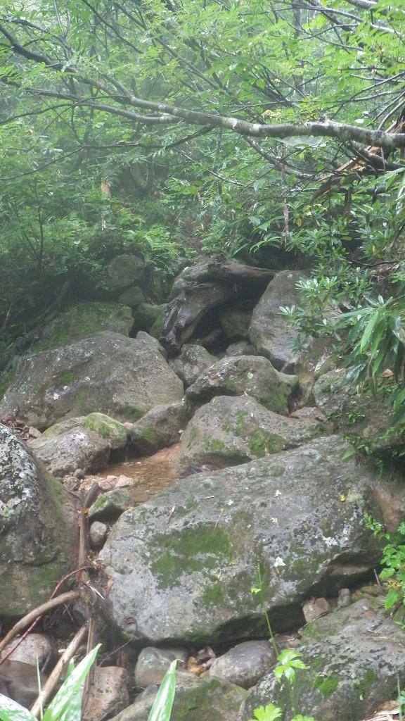 潜滝からの沢沿いの道は巨岩が多く、よじ登りながら渡渉する箇所がある。また、登山道が分かりにくい箇所がある。