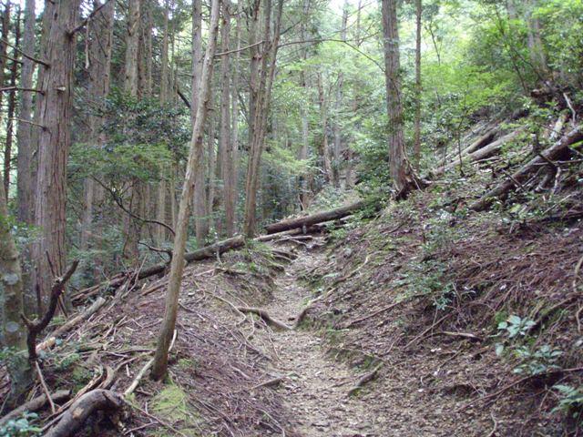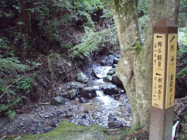 来た道を引き返し、川久保渓谷へ向かう「水声の道(ゾウ谷)」へ下ってみました。沢沿いに歩く道で結構涼しく、水場もあるので、夏場にオススメのコースです。帰路は林道の分岐まで下って、大杉経由で、善峰寺に下山しました。