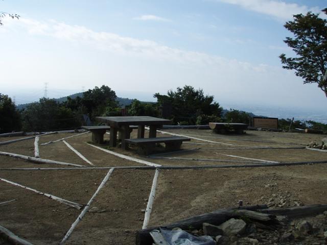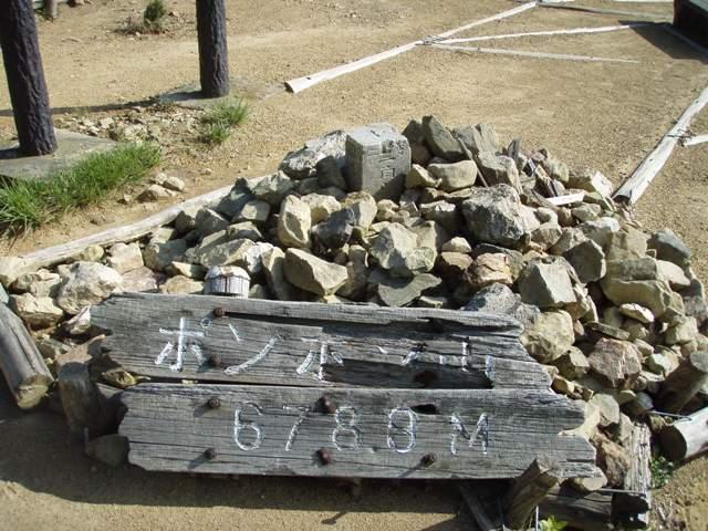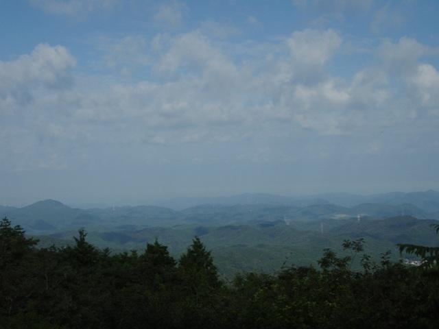 釈迦岳からポンポン山の間の山道は勾配が少なく、風もよく通るところなので、夏場でも快適に過ごせます。約25分でポンポン山の山頂に到着。三角点あり、展望あり。気温25度。以前と比べると、小奇麗に整備されていました。