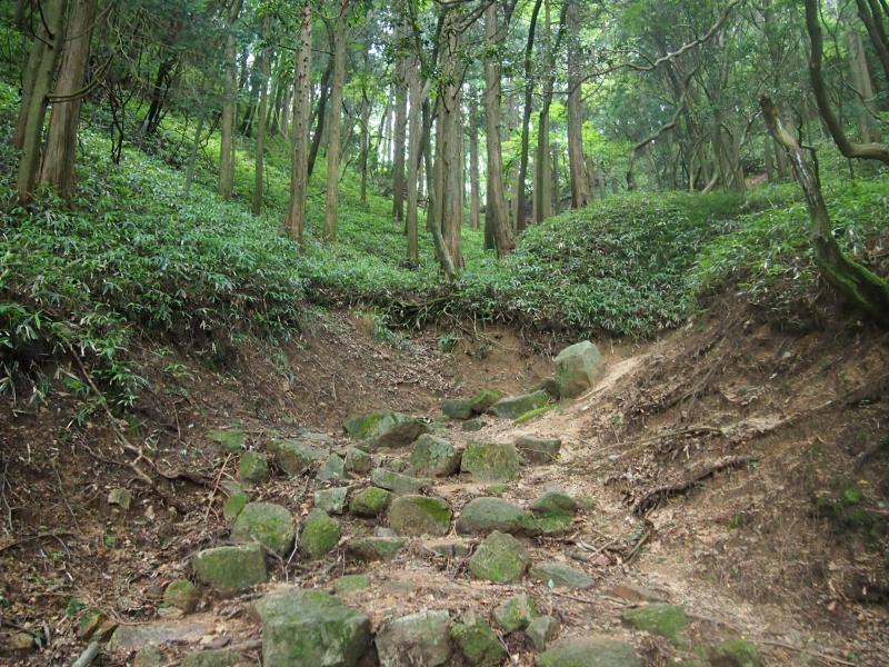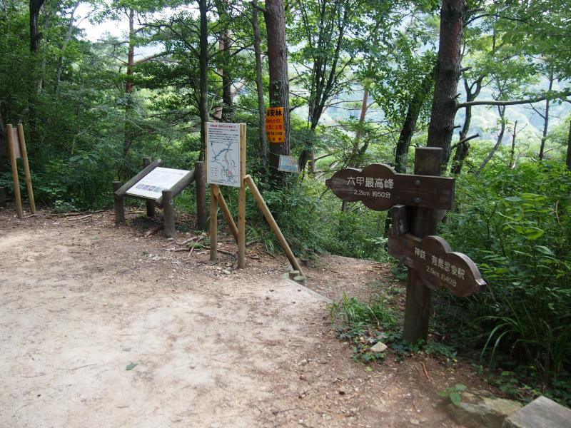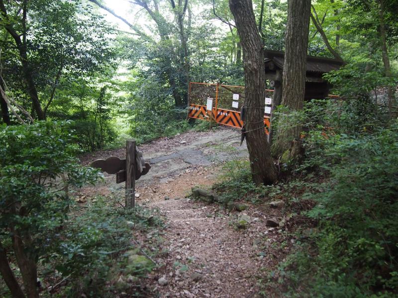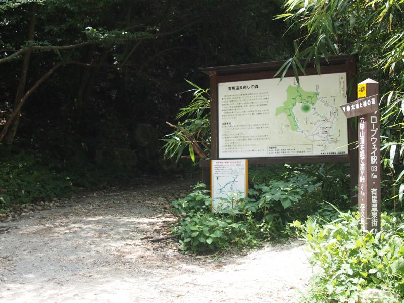 ロープウェイ有馬温泉駅脇の登山道入り口は閉鎖を確認。住吉道を的場山に上り炭屋道を谷に降りて紅葉谷道に合流します。