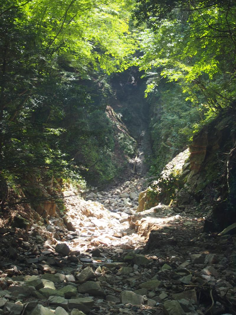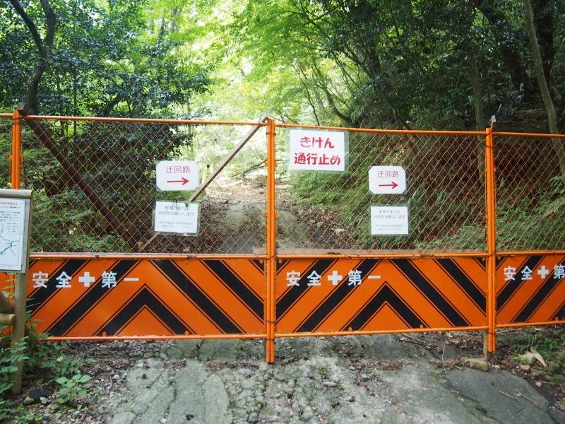 前年の台風による土砂崩れは、ロープウェー駅脇から入る登山道の最初の部分が大きく崩壊しており、この区間は復旧のめどが立たないようです。この区間は住吉道~炭屋道で迂回できるのでとりあえず紅葉谷道は通行できます。ただし、以前と比べかなり谷筋が荒れていますのでご注意ください。