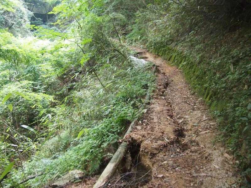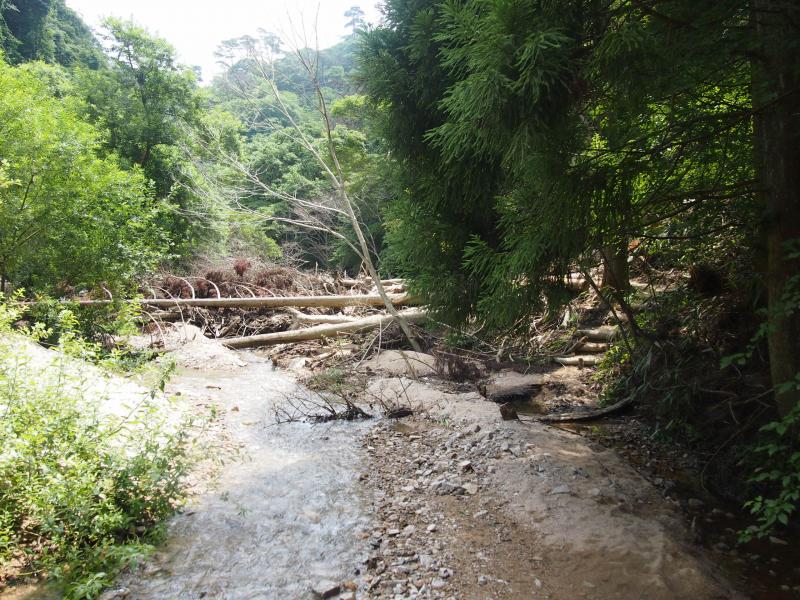 谷筋は橋の流失や小規模の土砂崩れ等で依然と様変わりしており、白石滝・百間滝方面にも行ってみましたが、谷が荒れていたので百間滝手前で引き返しました。蒸し暑さにヘロヘロになりながら極楽茶屋跡到着したあと、六甲山・住吉道経由で有馬に降りました。