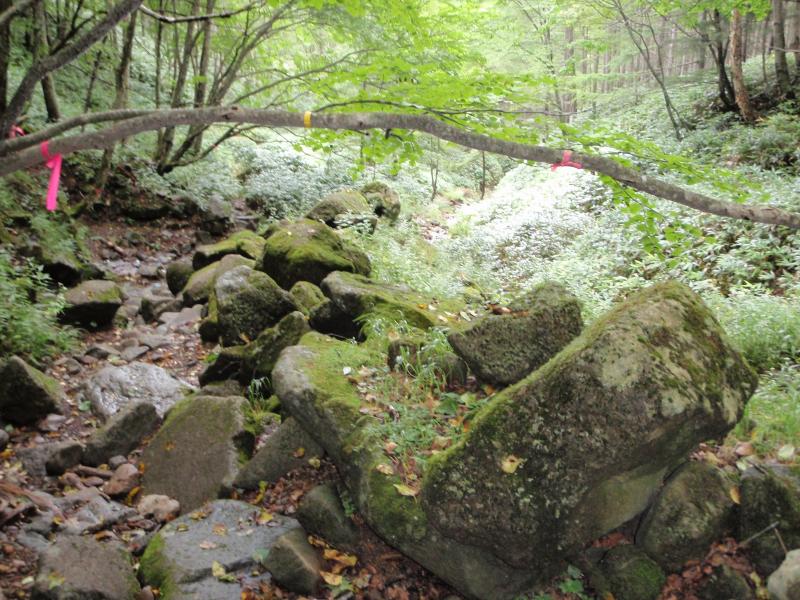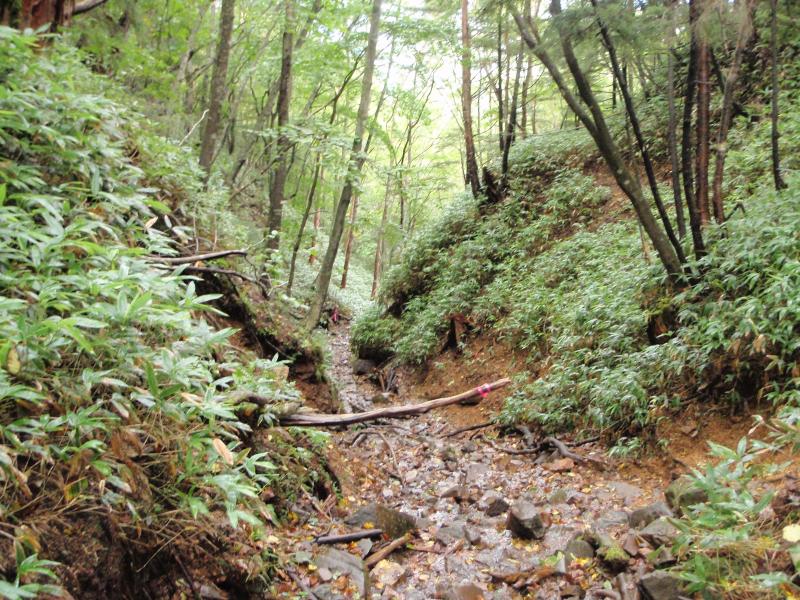 登山道は歩き始めは笹も刈ってあり歩きやすいですが、二俣を過ぎるとざれた登りとなり多少歩きづらくなります。不動沢のコルからはぬかるんでいる場所もあるので注意が必要です。