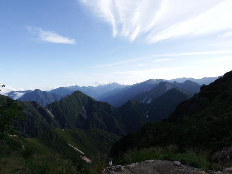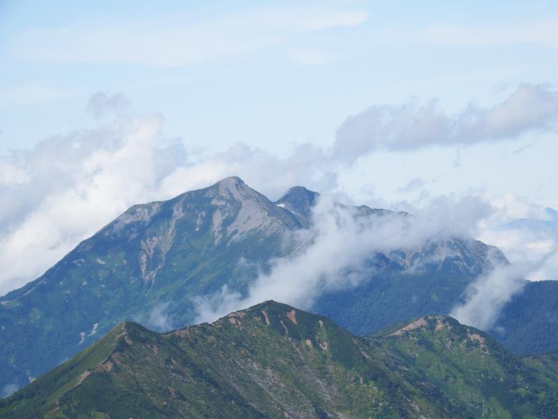 種池山荘から先、岩小屋沢岳~鳴沢岳~赤沢岳~スバリ岳とピークをいくつか経て針ノ木岳に続きます。