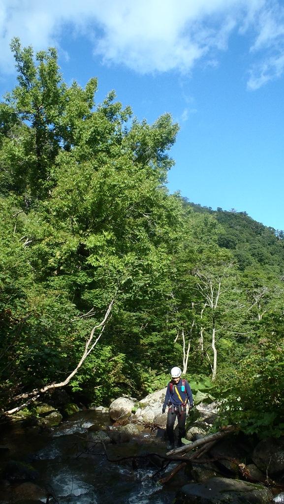 前半は単調なゴーロながらもコケがむした岩の間を穏やかな流れが続き美しい。途中1箇所大滝がありますが左岸から巻けます。