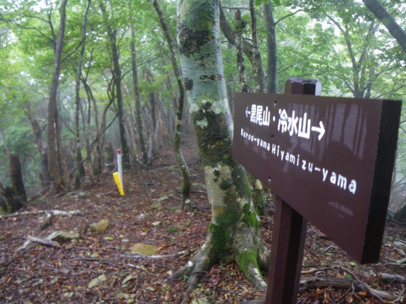 - 冷水山林道登山口(28分)冷水山(20分)黒尾山(25分)黒尾山林道登山口(15分)安堵山(8分)黒尾山林道登山口(25分)冷水山林道登山口