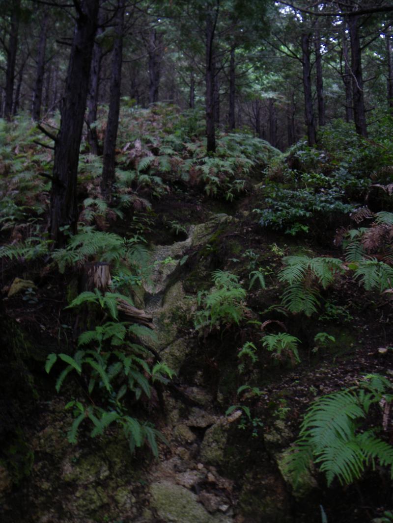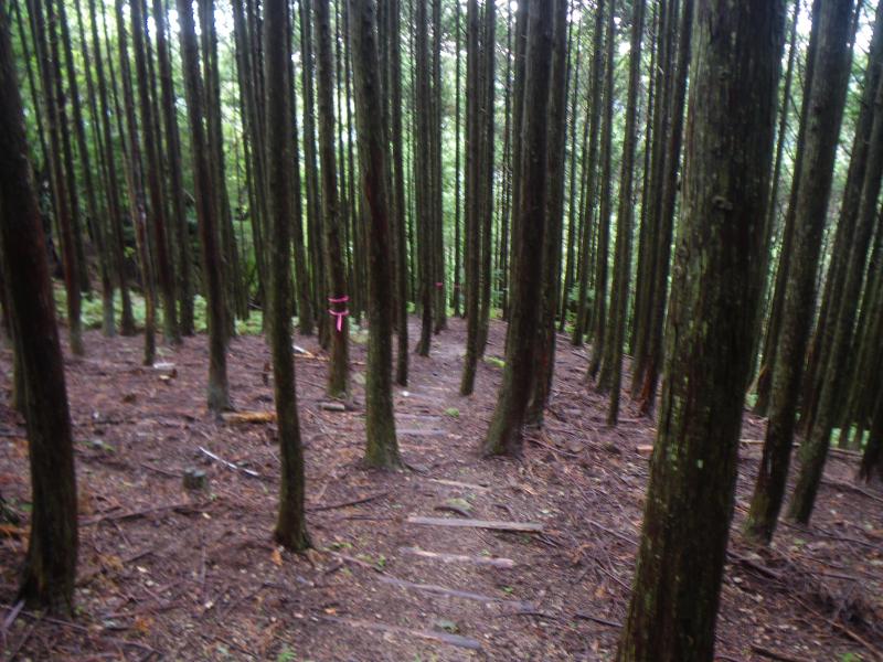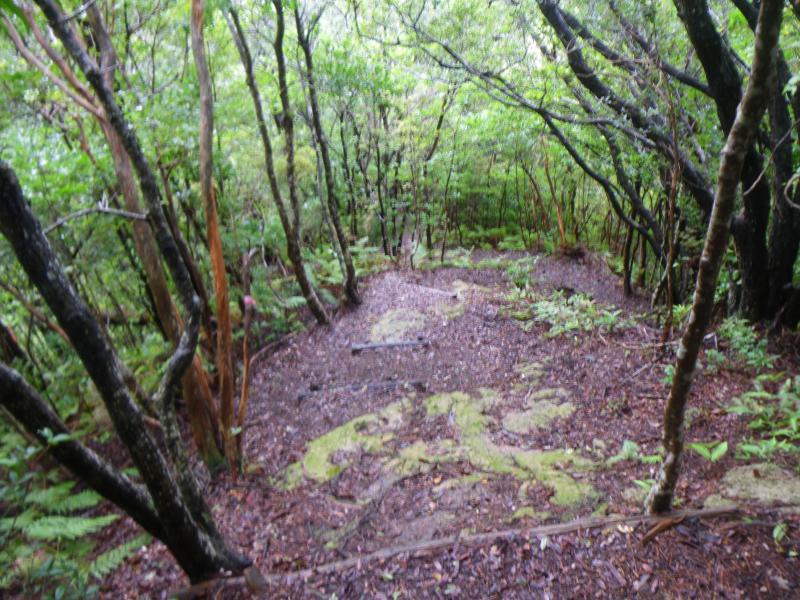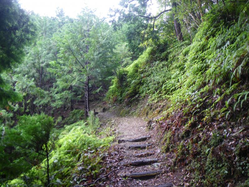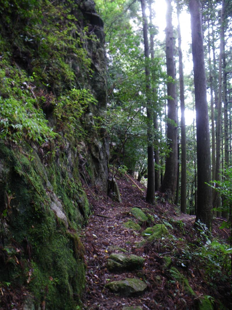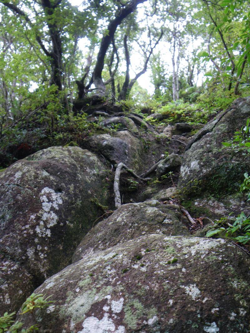 ⑥鞍部からの下降後は岩峰群を巻くように樹林帯の道が続きます