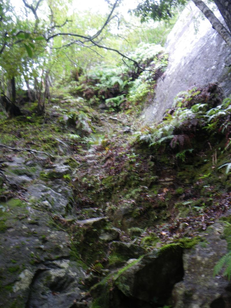 ⑤雌岳・雄岳の鞍部からの下降も残置ロープがあり、スリップ注意