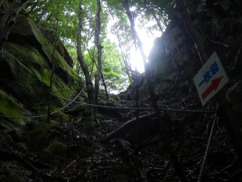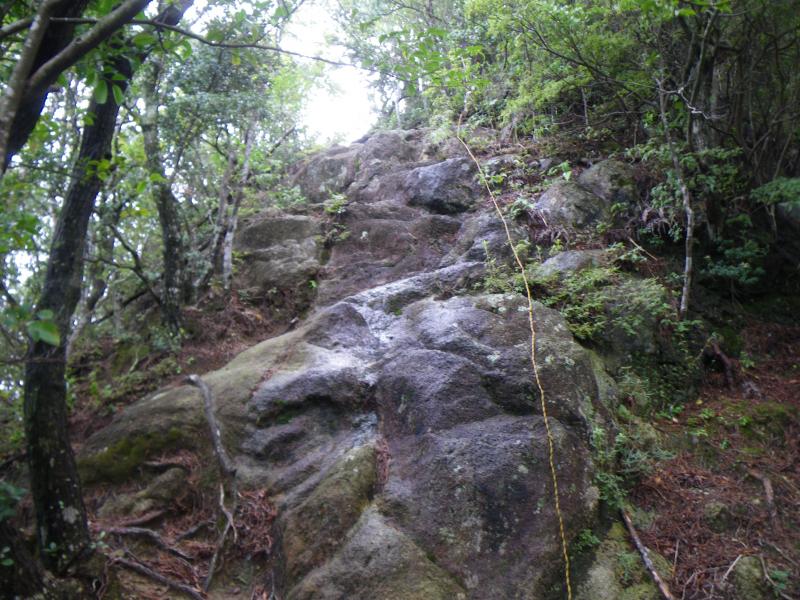 ③雄岳へは残置ロープや鎖場があります。次の雌岳への登りも同様ですが、こちらのほうがきつい感じです。雄岳~雌岳も急な細い尾根になっています。