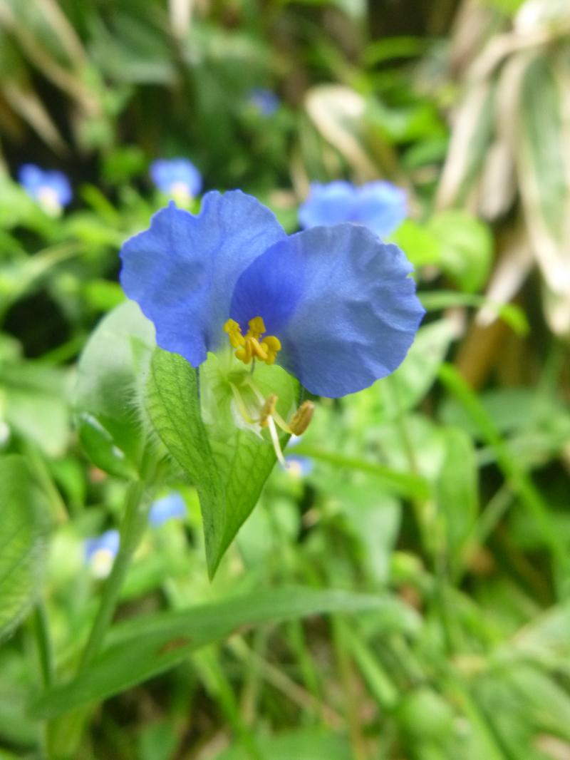 ツユクサ 朝露を受けて咲き、午後にはしぼみます。