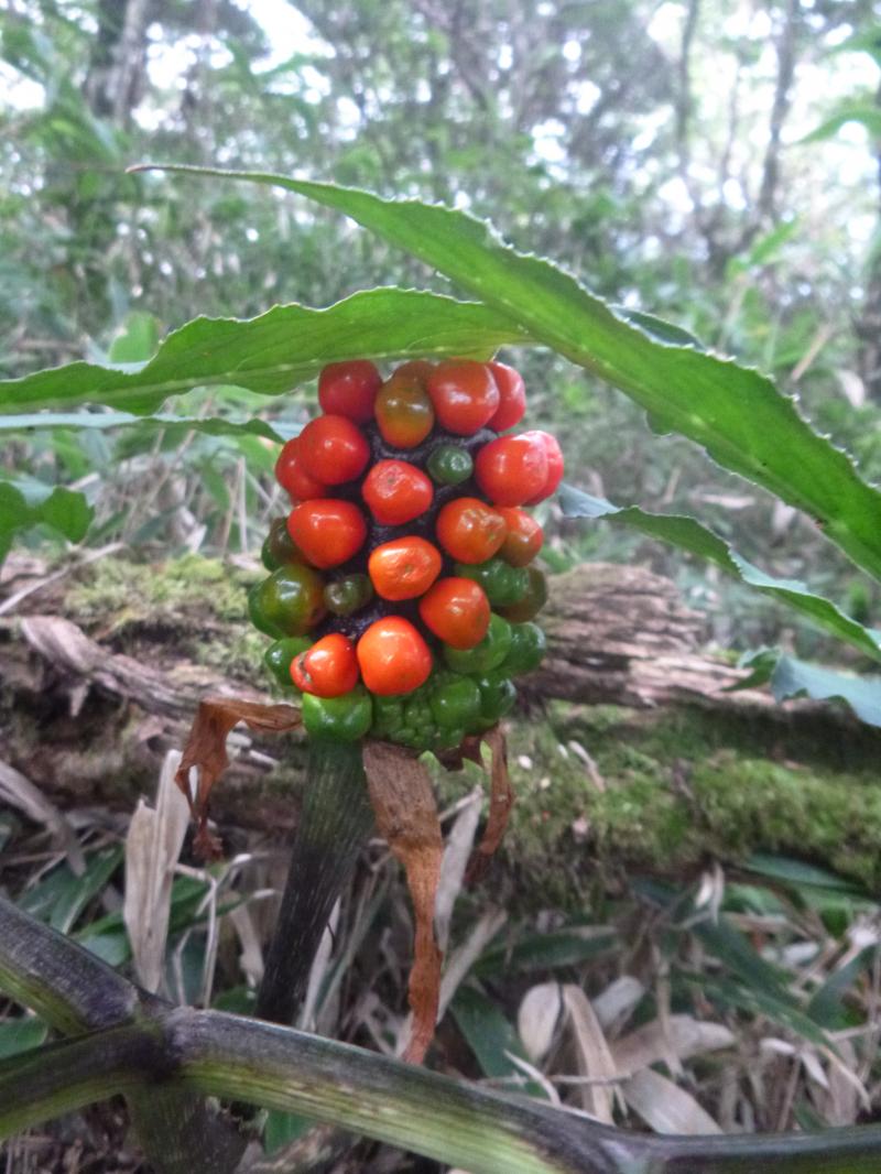 突然現れると驚きます! 色づいてきているマムシグサ