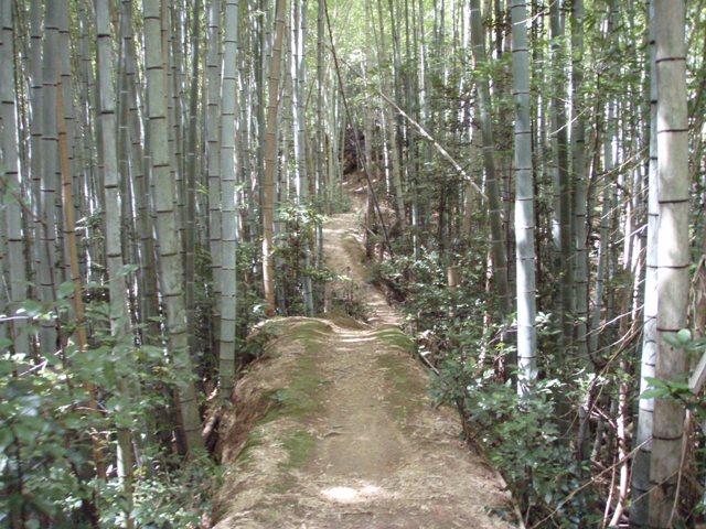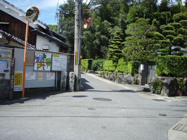 阪急・上桂駅を出発して住宅街を西へまっすぐ伸びる道を歩いていくと、東海自然歩道と「桂坂へのぬけ道」の標識を発見。そのまま西へ進み竹林の中の急坂を登って行くと、墓地に到着。ここが唐櫃越ルートの出発地点。