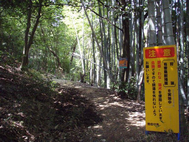 墓地から唐櫃越ルートに入ってすぐの所に警報装置付の柵がありました。