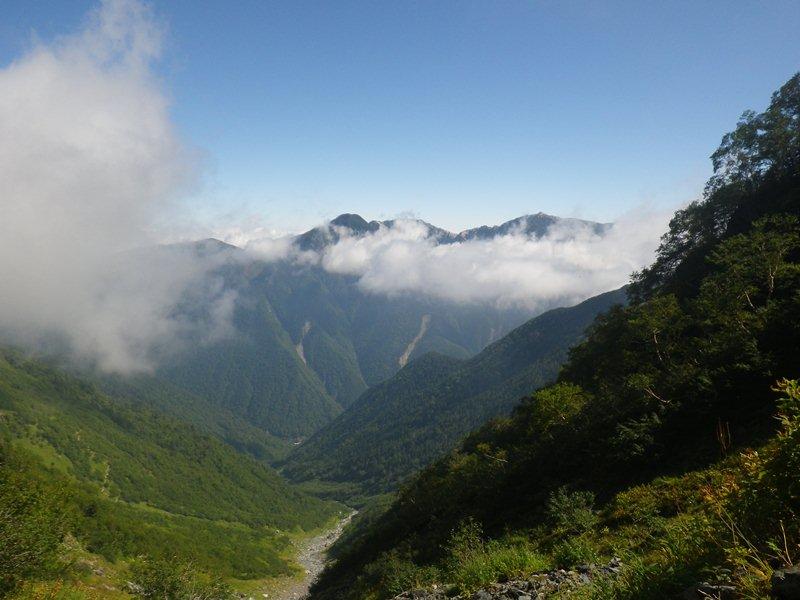 広河原に6時30分着。台風の影響で大樺沢の上部の登山道の崩れを懸念していたが、現地情報によると一部崩れているが、通れることは通れるとの事。明日の行程も考えて、なるべく距離と時間を稼ぎたいので、白根御池小屋ではなく、大樺沢のルートから二俣をめざすことに。