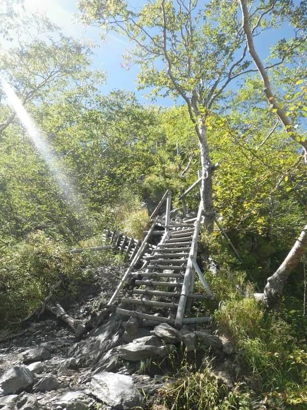 ■八本歯ノコルへの梯子は、一部崩壊していますが、2本並行部のどちらかは使用できるので、通行は可能です。ただし、登りと下りとの交差では、混雑が予想されます。下りでの八本歯のコースは避けた方がよさそうです。