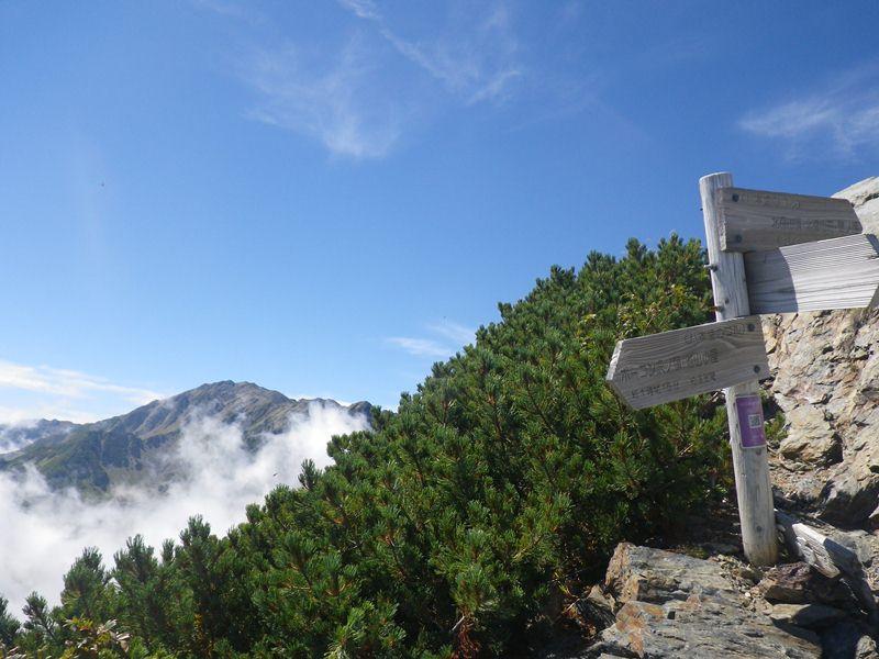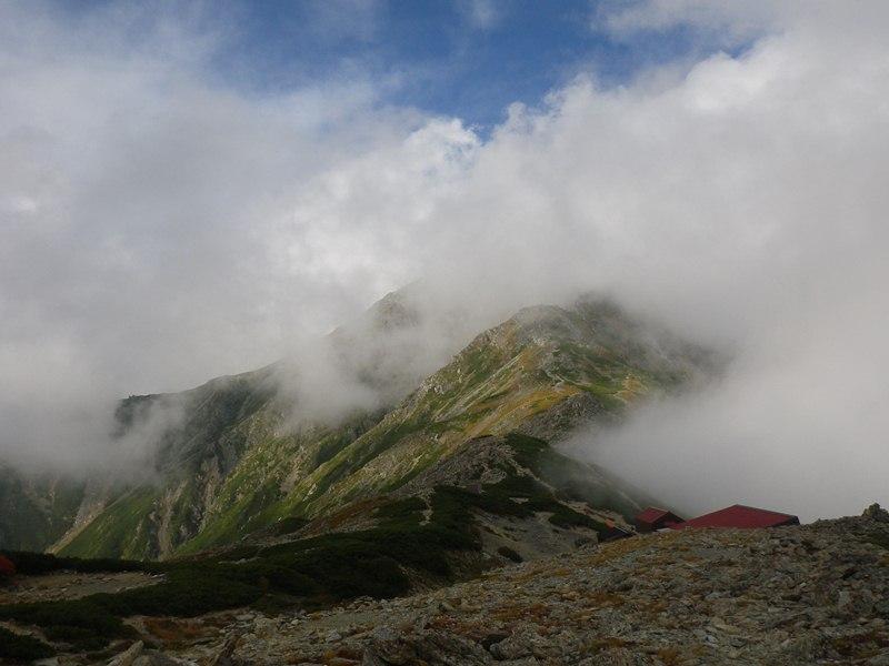 コルから一緒だった方たちとのんびりおしゃべりを楽しんで、少しガスが出てきたので、途中のザックを回収し、山荘へ向かって下山。