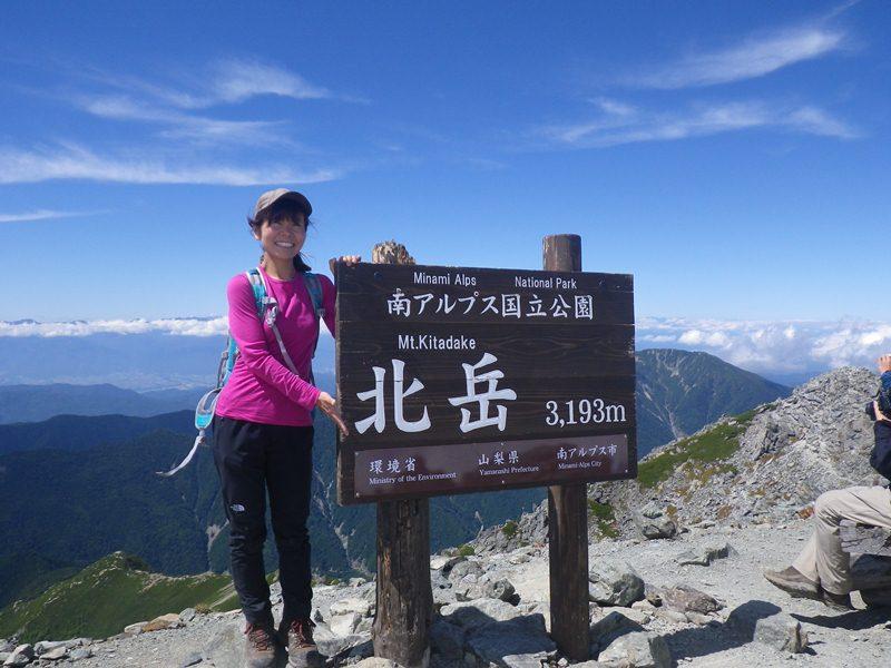 梯子を登りきると、一気に視界が広がり、北岳山荘、間ノ岳、そしてででーんとそびえる北岳が。