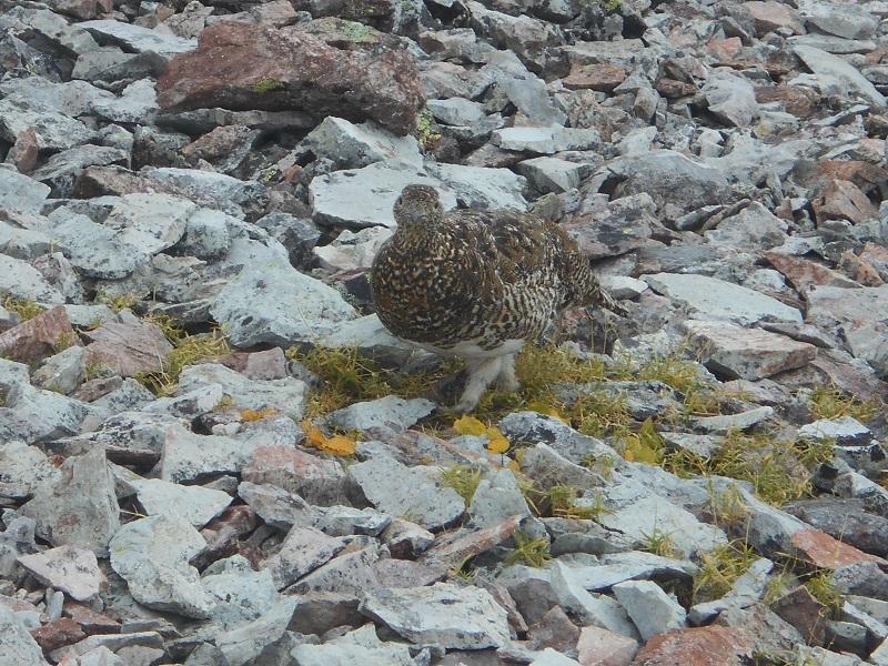 ここでテントを張り、一休みしてから蓮華岳へ。往復約一時間半の道のりで非常に気持ちのいい稜線歩きが楽しめます。途中、雷鳥にもお会いしました。