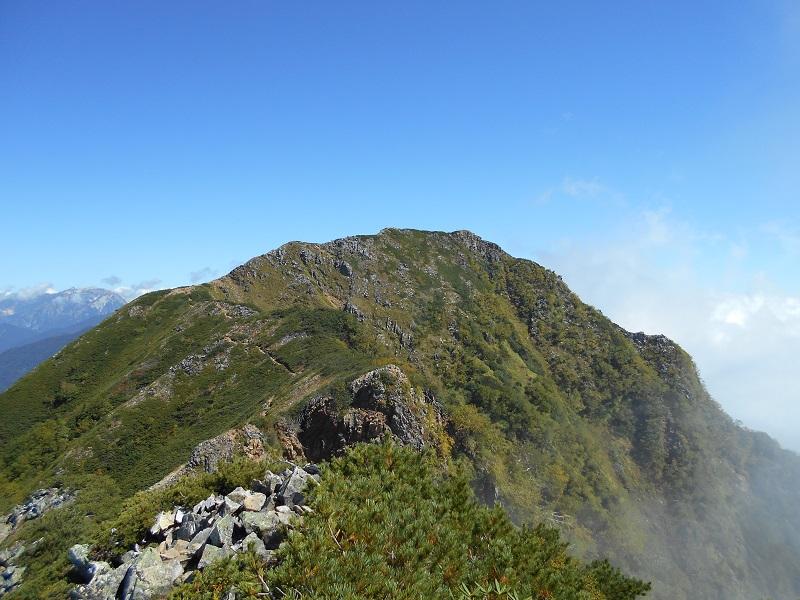 ここからの稜線歩きは急なガレ場の登下降の連続です。稜線上では立山連峰の展望が素晴らしかったです。