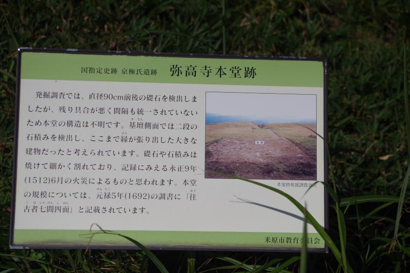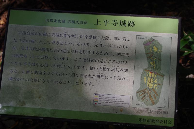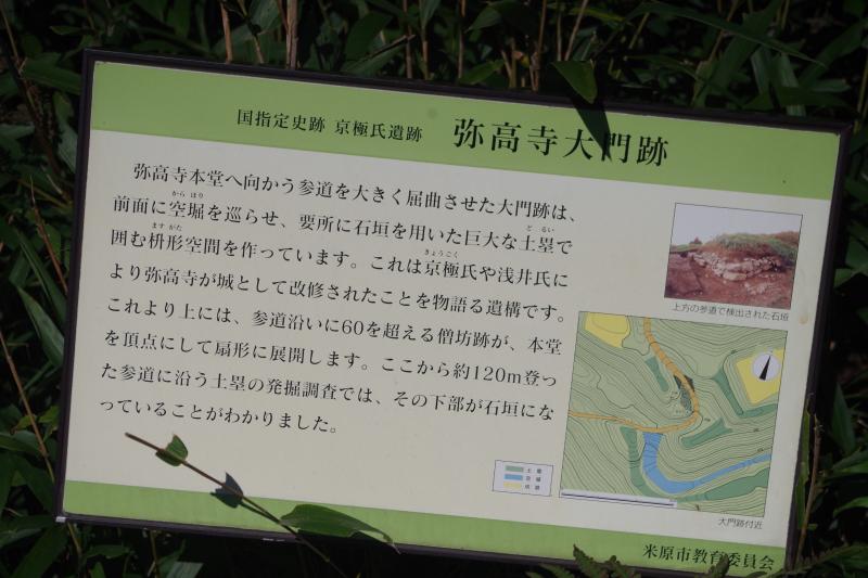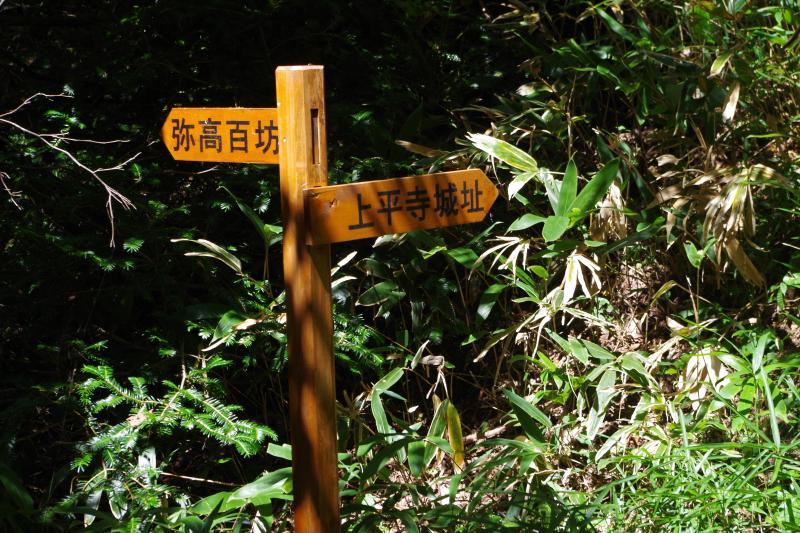 - 上平登山口(60M)上平城跡(35M)弥高百坊(寺)(15M)弥高尾根登山口(60M)上平