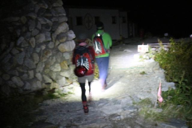 一服剣あたりまでは暗く、ヘッドライト頼りに岩場・クサリ場をのぼります。