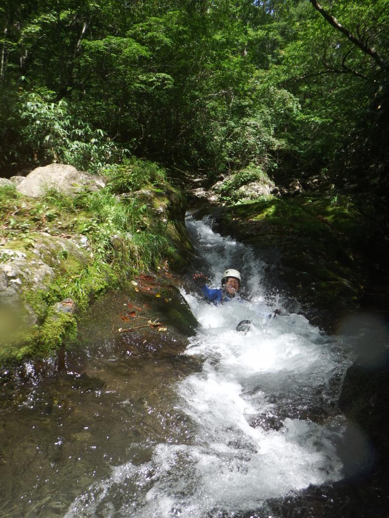 下降に使った峠沢では、天然のウォータースライダーが楽しめる。