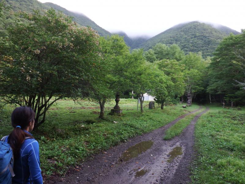 - 林道ゲート(30分)三斗小屋宿跡(10分)入渓点(180分)稜線(120分)峠沢(180分)林道ゲート