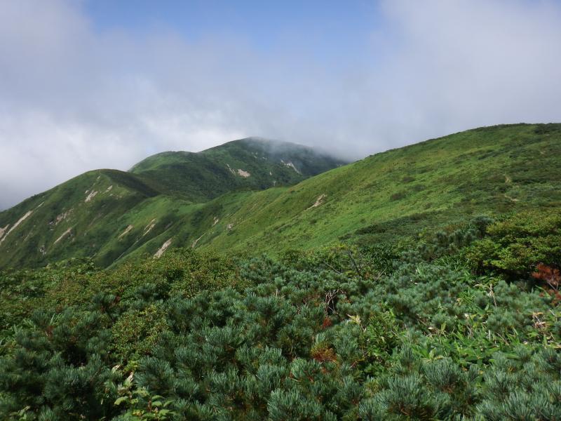 ほぼ藪こぎなしで稜線に出ると、気持ちの良い草原が広がっていた。