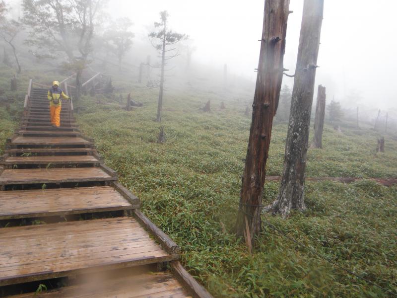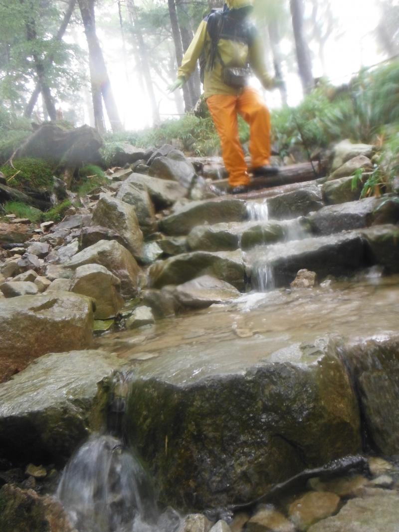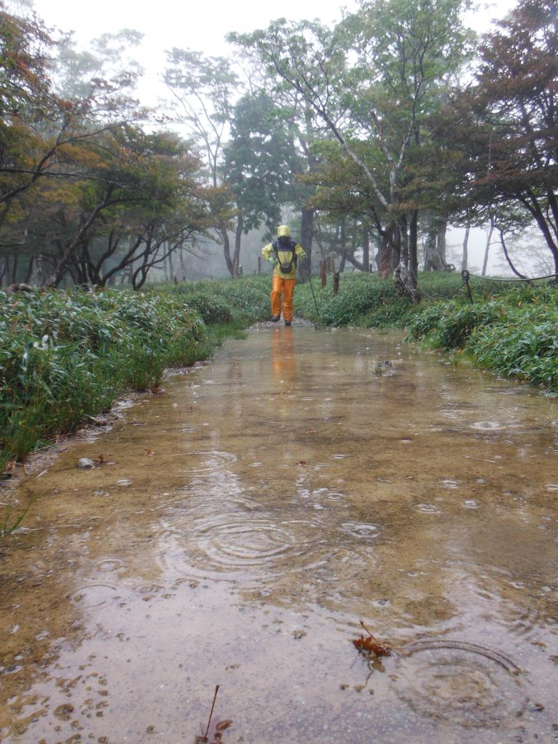 いるのでとても歩きやすいのですが、今回はずっと雨だったため、登山道にはいたるところに