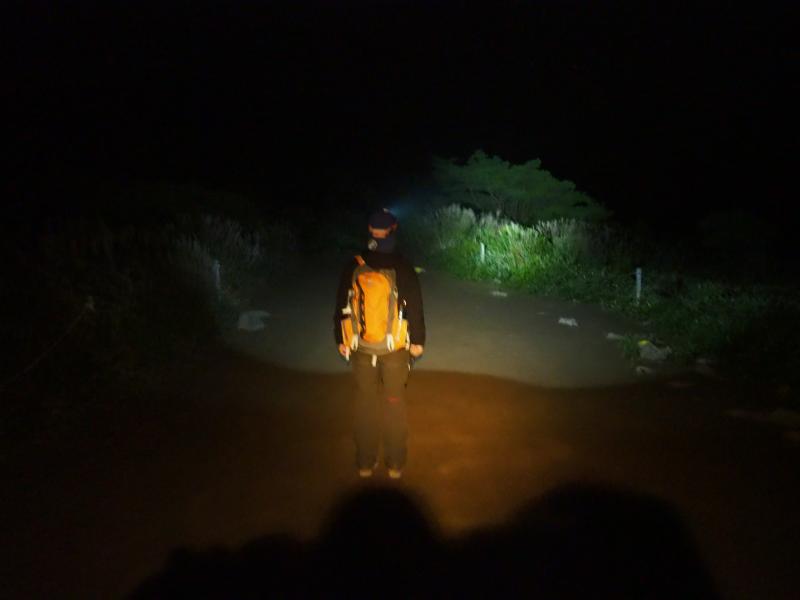 全く一睡もしていない中3:20に出発。本日の相棒はペツルのMYO。明るさが違います。牧の戸から久住山へのルートは途中多少岩場があるものの道幅も広く整備されていて暗い中でもとても歩きやすかったです。頭上も開けているので先日行った立石山ナイトハイクより怖い感じが少なかった気がします。ヘッドライトを消せば空には星空が。うーん、キレイ!!