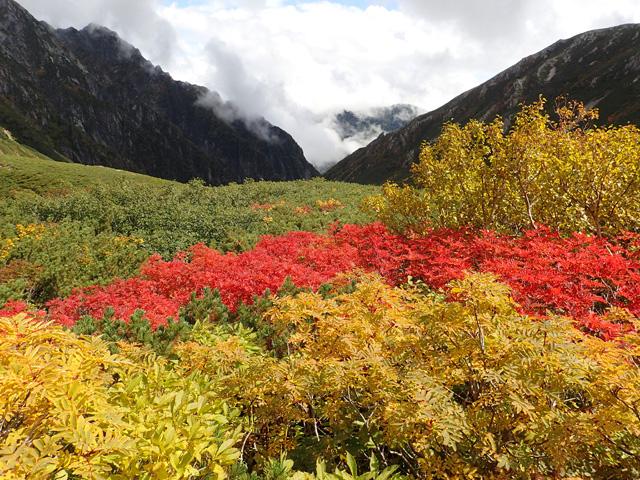 特に剱沢キャンプ場周辺の紅葉が圧巻でした。赤、黄、緑の奇麗なコントラストが印象的でした。