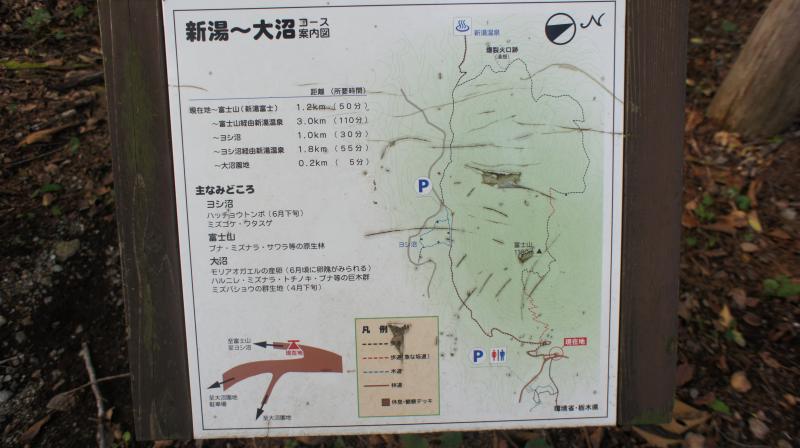- 大沼駐車場(35分)→新湯富士山頂(20分)→ヨシ沼(25分)→大沼駐車場