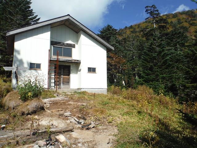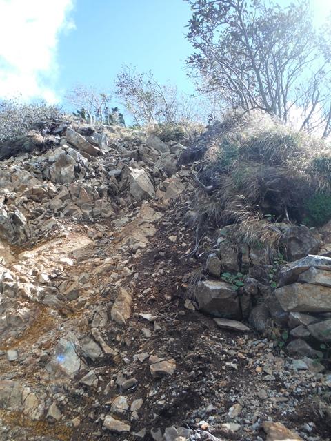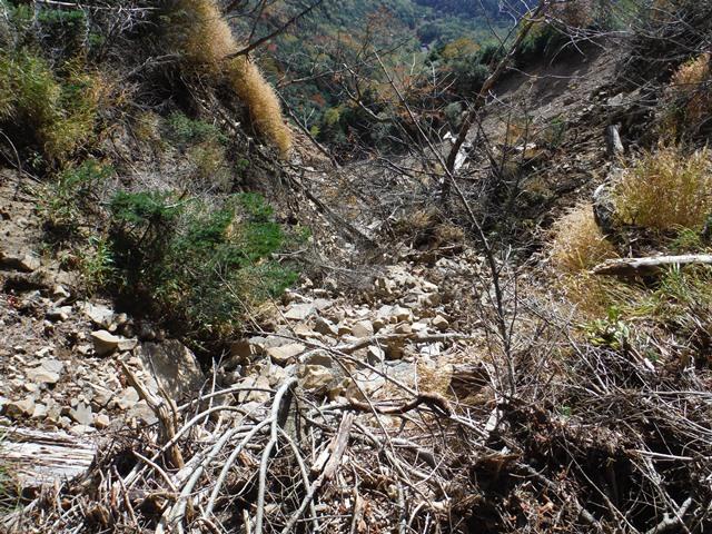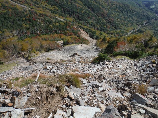 小屋下の崩落が登山道のすぐそばまで来ている。