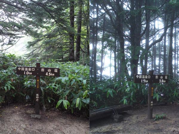 - 中房温泉(8:30スタート)==3:30==合戦小屋(大休止0:30)==1:15==燕山荘(13:45到着)
