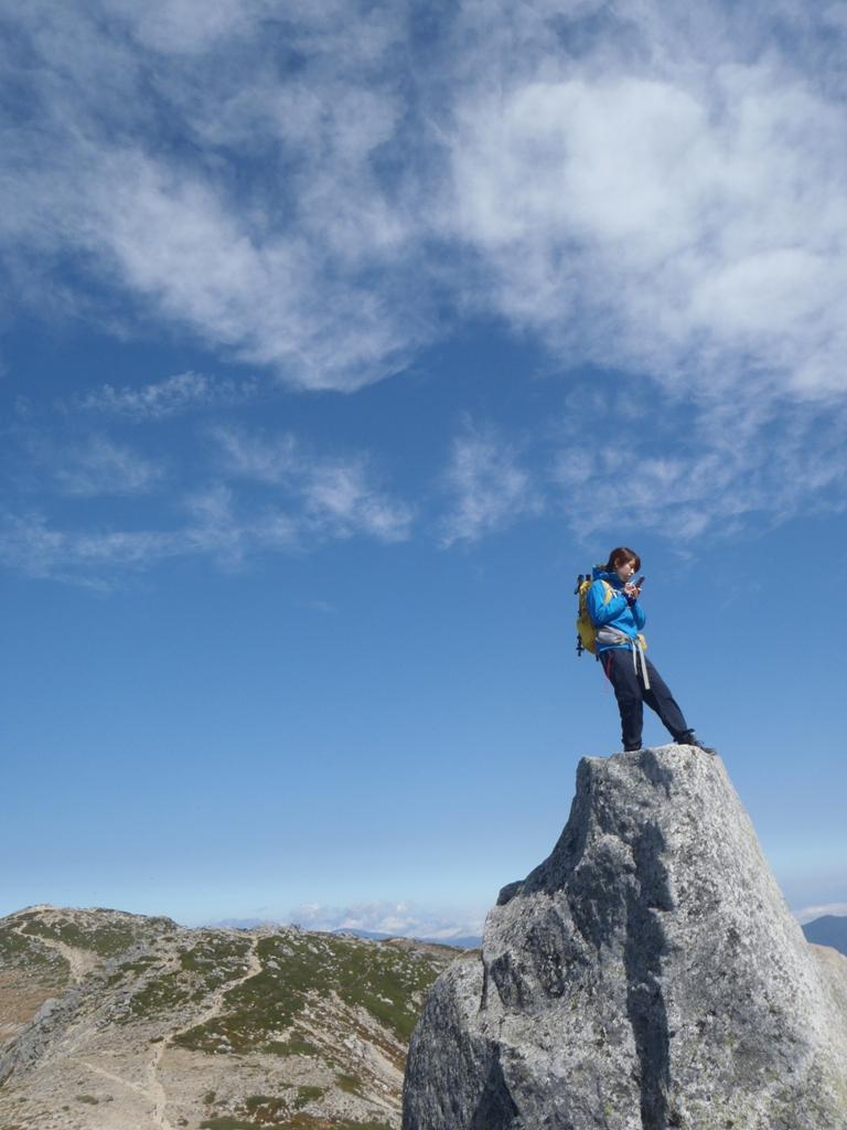 正午ごろになって気温も上がり、木曽駒ケ岳頂上、11:30で気温15℃。風がしのげる場所で、日当たりが良ければかなり暖かく感じました。