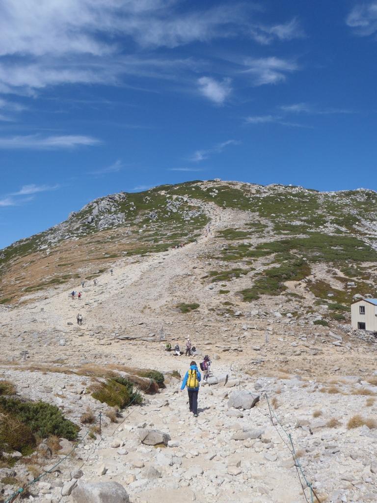 - 千畳敷→(50分)乗越浄土→(20分)宝剣岳→(30分)中岳→(20分)木曽駒ケ岳→(60分)千畳敷