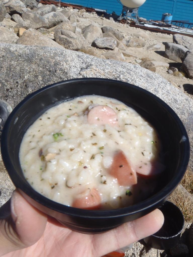 Tシャツ・薄手フリース・ハードシェルのレイヤリングで行動開始。手袋もしてました。