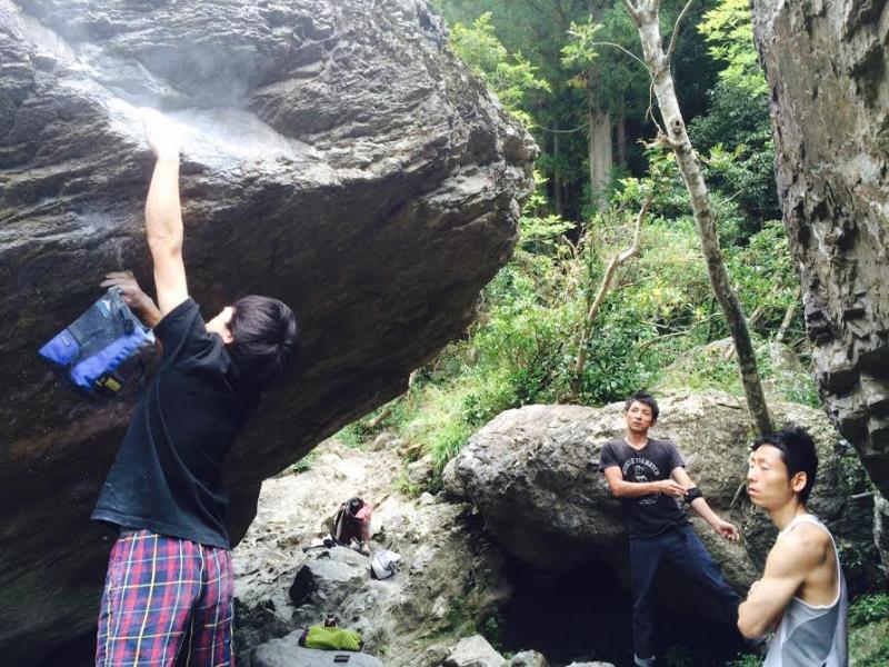 宮川ダム近く、岩場には駐車場から徒歩で行けます。