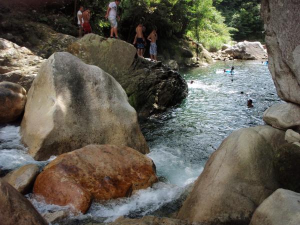登山、沢登り、キャニオニング、キャンプ場等でも知られている猿ヶ城渓谷。かつ地元の子供の水遊び場でもあるので、色々なアウトドアが共存している光景が面白かったです。