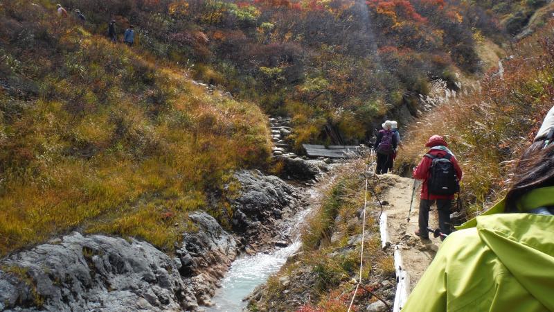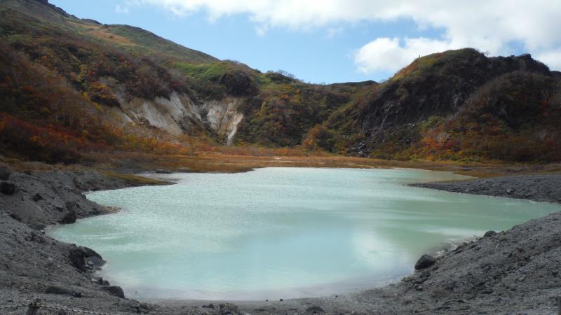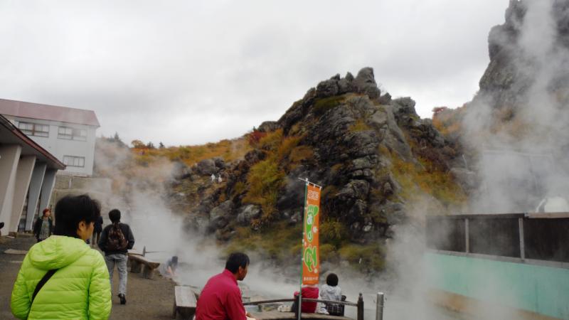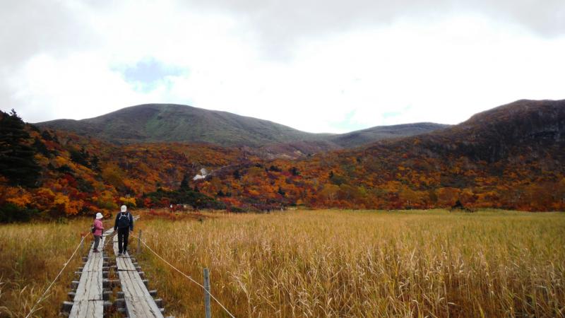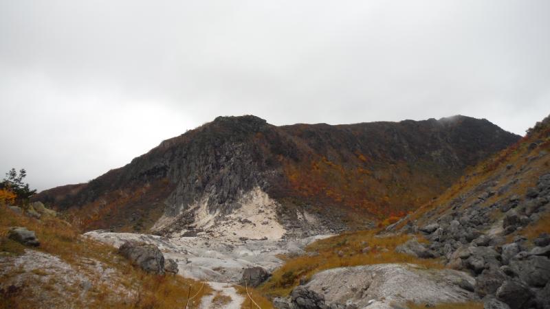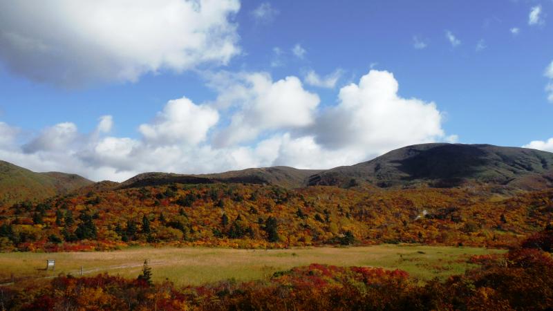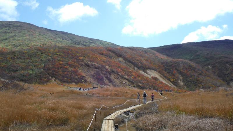 秋は東北に行きたくなります。今回は宮城・岩手・秋田の三県にまたがる紅葉で有名な栗駒山に突発的に行って来ました。前日に仙台へ入りスペシャル牛タン定食を食べ(ほっぺたが落ちました)、翌朝仙台から一ノ関へバスで移動、一ノ関からまたバスで須川高原温泉へ入りました。栗駒山へはアクセスが悪く、公共交通機関で行こうとすると一ノ関から須川高原温泉へ行くバスしかなく、選択の余地なしで須川コースとなります。しかもこれも季節運行です。人数がいればタクシーを利用して一番一般的ないわかがみ平コースも歩けます。登山口は他にもいくつかあります。