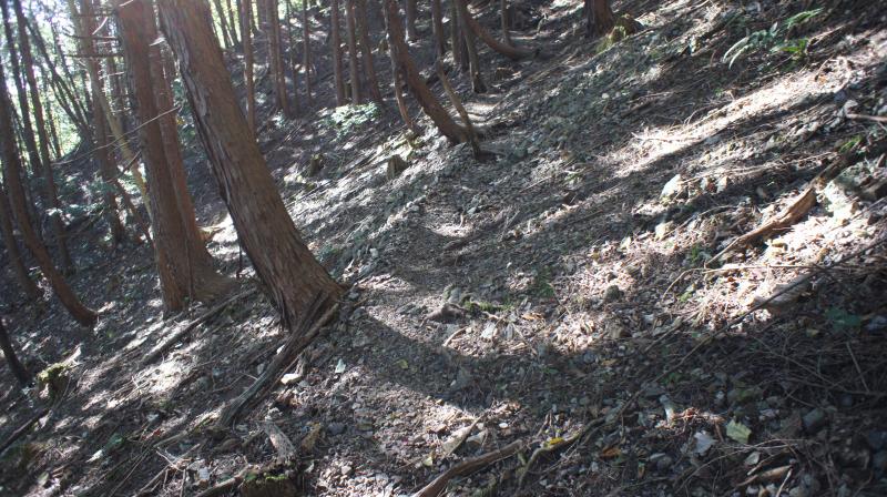 そこから少し急な坂、一ヶ所木が倒れており踏み跡を完全に見失いますが、少し先にいけばすぐ見つかります。